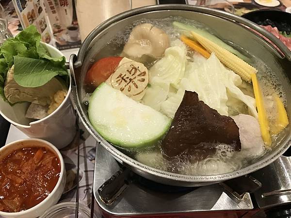 Cathy點的是酸菜鍋,試喝了一小碗湯,沒有想像中酸,還蠻清爽的呢!也很不錯唷~